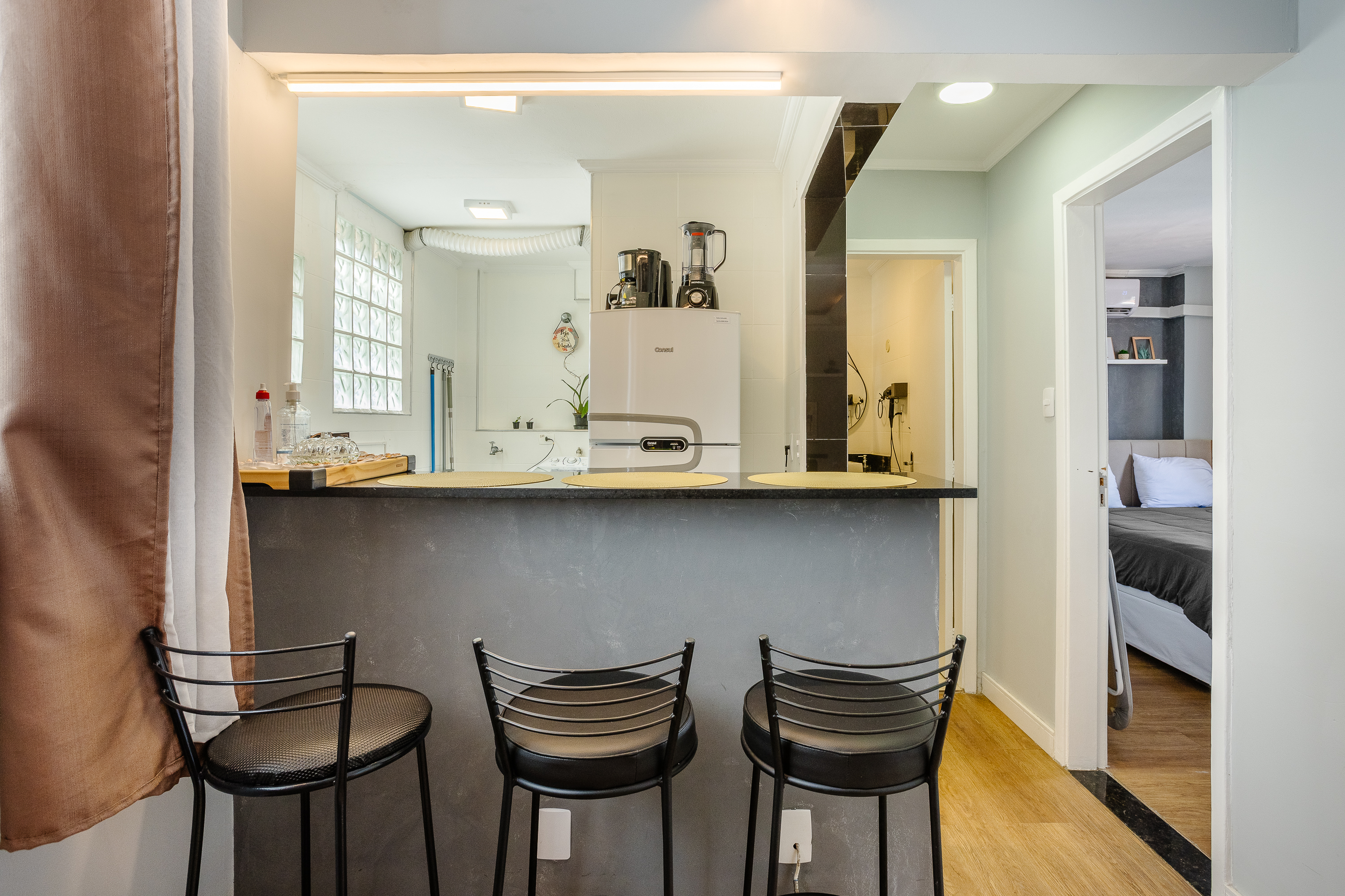MOBILIADO!!! SÓ LEVAR A MALA, 1 DORMITORIO COM AR CONDICIONADO, PORTA BALCÃO, AMPLA VARANDA CHARMOSA COM VISTA PARA PRAÇA, SALA COM VENTILADOR DE TETO, COZINHA TIPO AMERICANA COM BALCÃO, FOGÃO INDUÇÃO, AREA DE SERVIÇO COM MAQUINA LAVAR, BANHEIRO BOX COM CHUVEIRO MEGA DUXA PREMIUM! E UMA VAGA PARA CARRO NA GARAGEM.